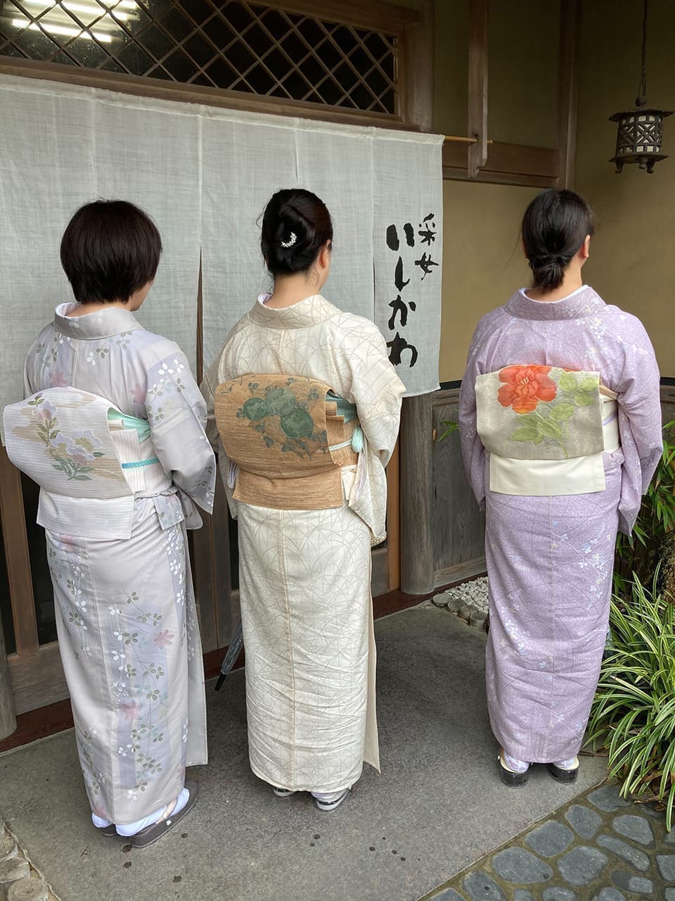 当教室では定期的に、着物でランチ会やお出かけを計画して所作を学びます。着物のマナー、立居振舞、礼儀作法も身に付きます