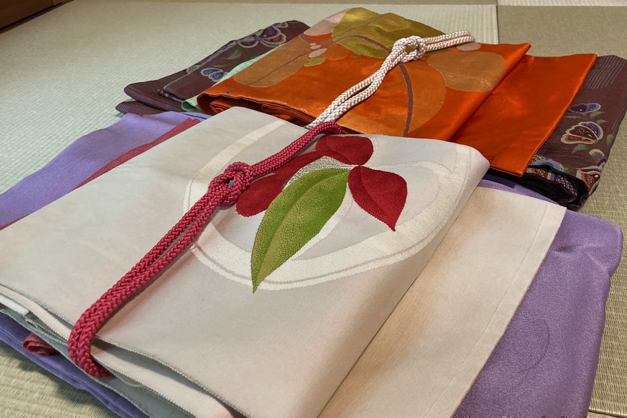 基本的にはご自分の物を持ち込んでのレッスンになりますが、お持ちでない方には教室のきものや帯、小物を自由に使ってレッスンして頂けます。(貸し出し無料)