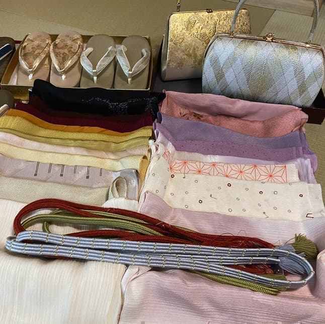 帯締め、帯揚げ、草履、バッグ、ひも類などの和装小物の整理